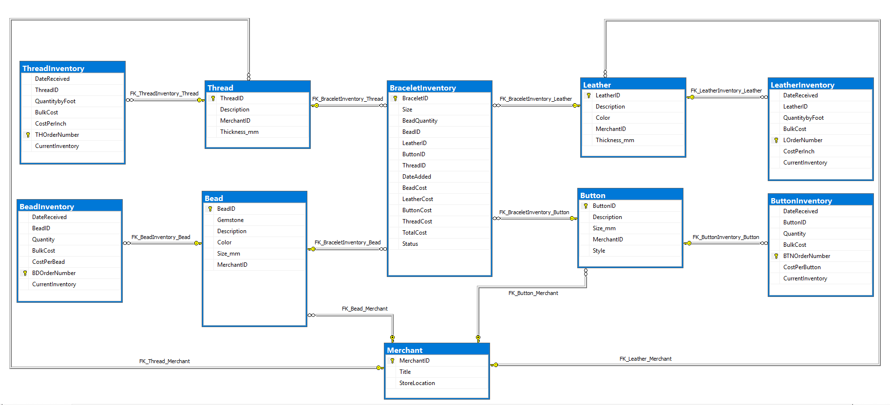 Here is my Bracelet Database Diagram with Foreign Key Relationships.